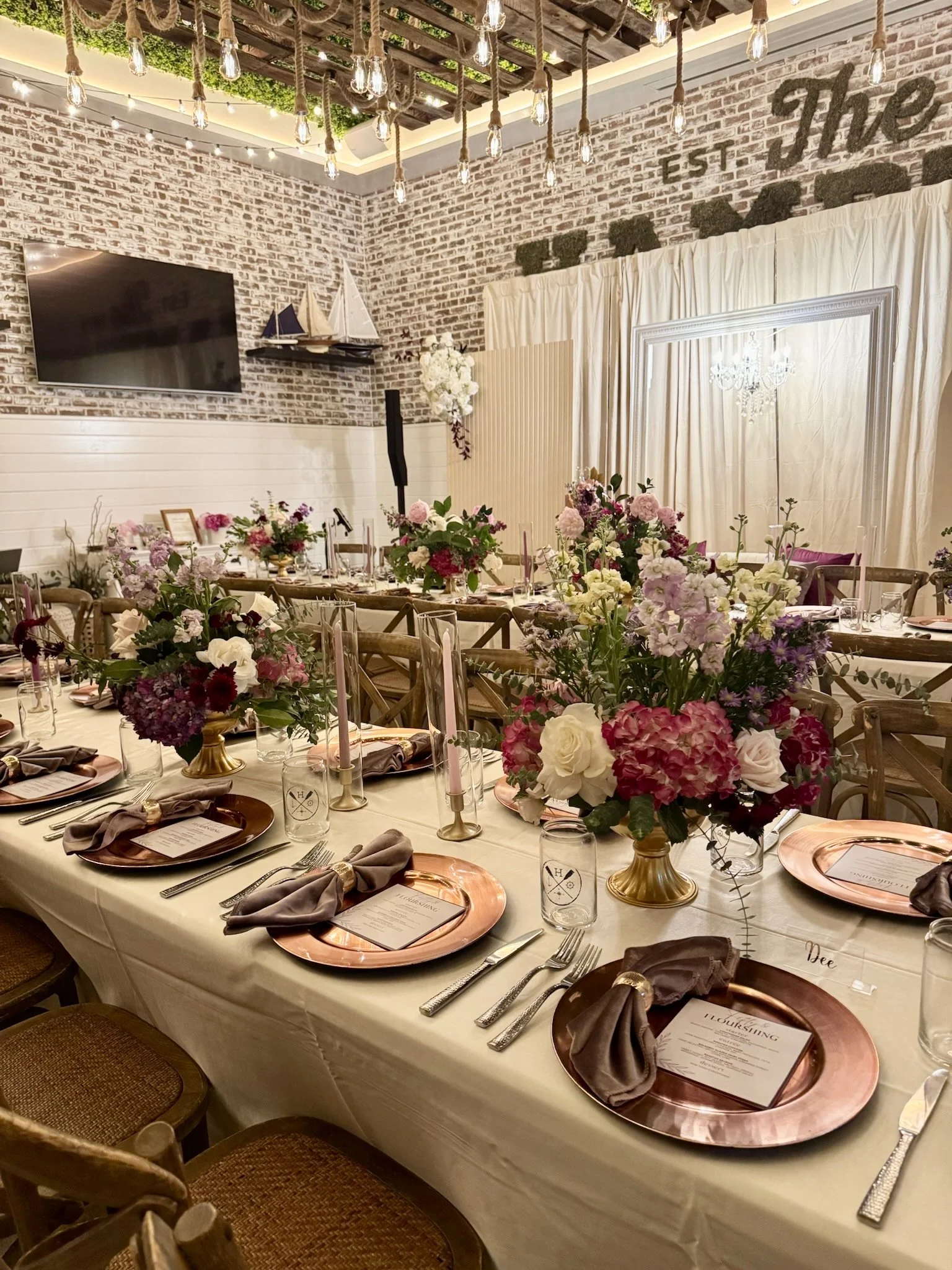 FULL EVENT DESIGN: We design, curate, and organize all aspects of your events aesthetics. We are there from the very beginning, including a venue visit to create the layout and seating arrangements. This package is best for a “blank canvas” or venue transformation.